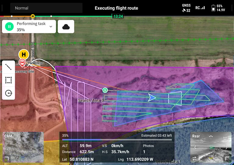 We work alongside ground teams to enhance situational awareness during search and rescue efforts, assist in locating missing persons and pets, and support wildlife and animal research through safe, non-intrusive aerial observation. Our operations are guided by a commitment to safety, precision, and ethical drone use, ensuring that every mission contributes meaningful, actionable insights.