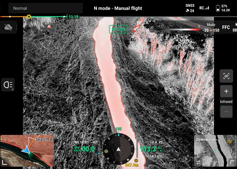 Using thermal drones to help search and rescue teams quickly and safely locate missing people and animals by providing real-time aerial and thermal views, improving response times when every moment counts.